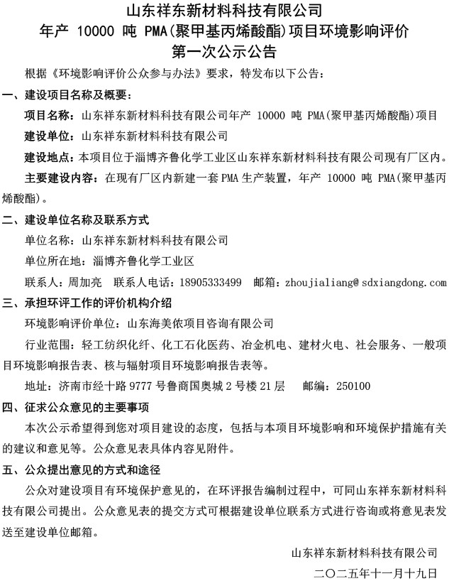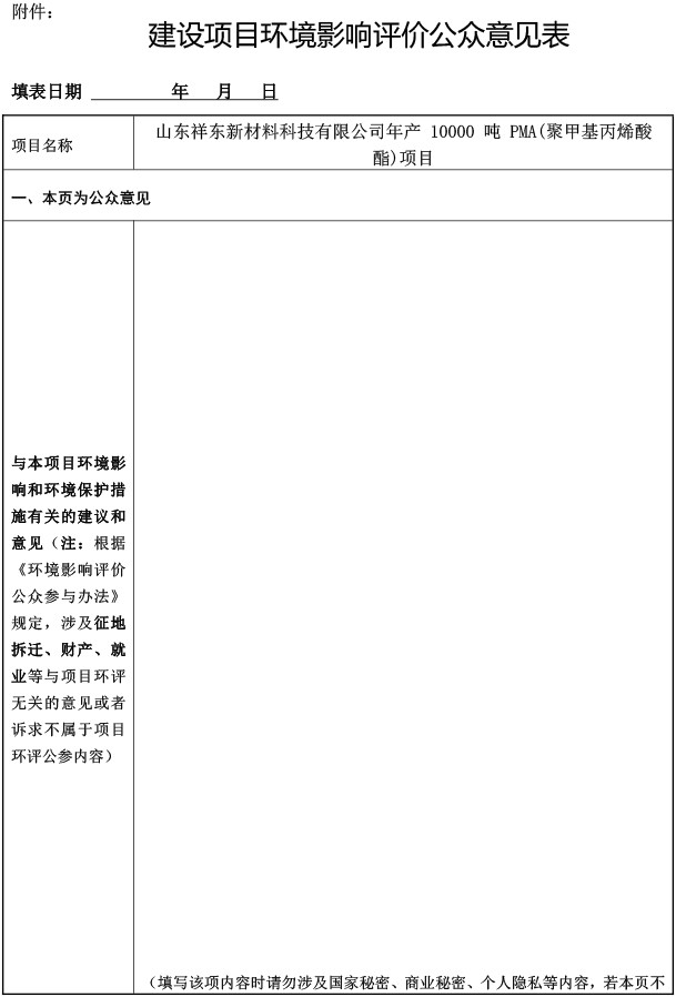 年產10000噸PMA(聚甲基丙烯酸酯)項目環境影響評價